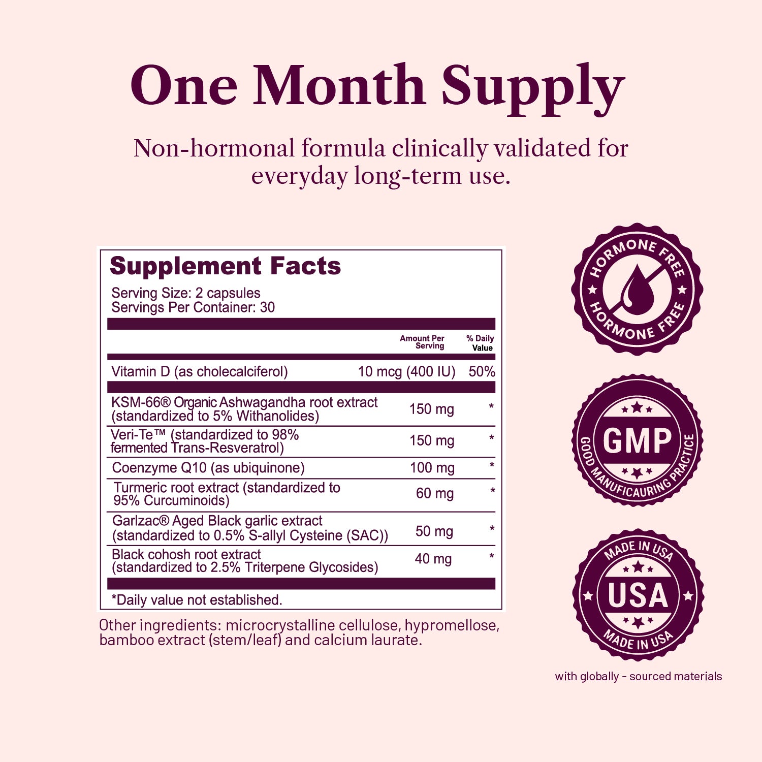 Traditional botanical known to support vascular comfort and temperature balance, helping maintain calm and composure through hormonal change.*